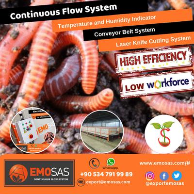 EMOSAS Continuous Flow Systems, our company makes all kinds of equipment and machinery required for the production of worms and vermicompost production facility installation. We sell our product especially Europen Countries like Italy.Contact Number: +90 534 791 99 89 (Mail:export@emosas.com)